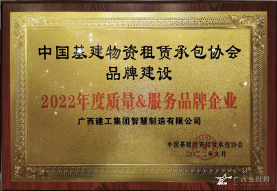 廣西建工集團智慧制造有限公司榮獲“2022年度質量服務品牌企業(yè)”,公司董事長、黨總支書記李日紅榮獲“2022 年全國基建物資租賃承包行業(yè)杰出創(chuàng)新人才”稱號。